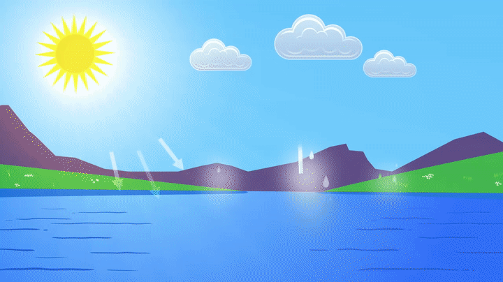 آب ها توی جهان بین دریاچه ها، رودخونه ها، اقیانوس ها و اتمسفر(جو) و زمینها حرکت میکنه و جابجا میشه و حدس بزنین اسم این جابجایی چیه؟ درسته اسمش چرخه ی آب هست. همینطور که آب در این چرخه در جریان هست از حالتی به حالت دیگه تبدیل میشه و به شکل مایع(آب) و گاز(بخار) و جامد(یخ) درمیاد.
